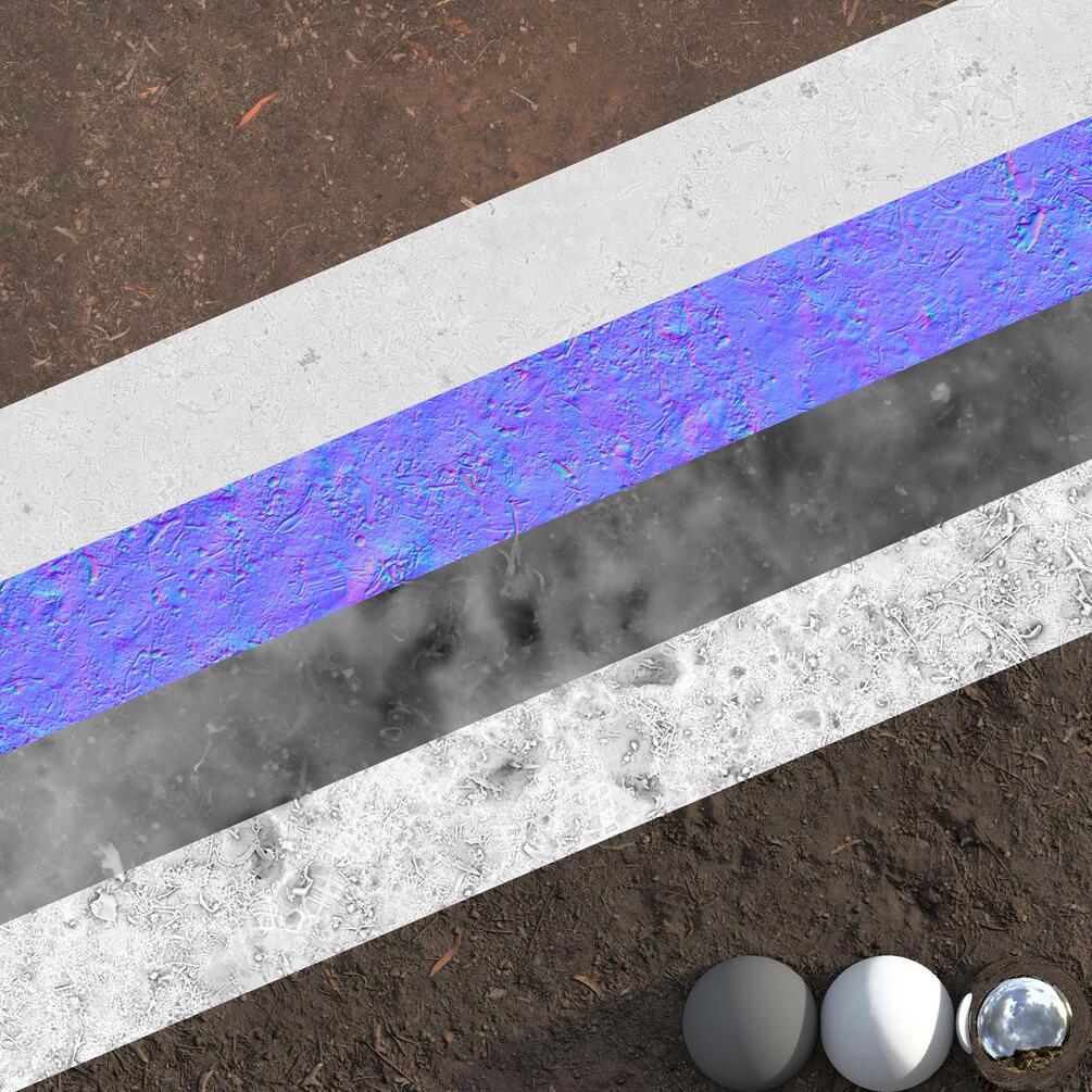 2 metre dirt patch captured in the Canberra region, with eucalypt leaves, wild grasses and iconic kangaroo poo. Ideally for Australian environments(or alien worlds populated by marsupials) but you could get away with using it for Californian scenes, you might wanna scrub out the roo poo though. Textures are in 8k include a Basecolor, Normal(dx format), Roughness, Height, Ambient Occlusion and Cavity. All maps have been provided in 16bit PNG as well as jpeg.